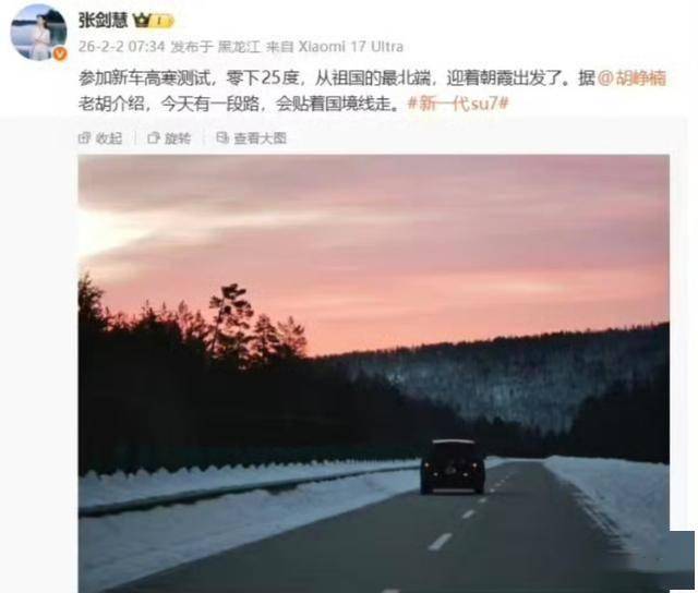 科技圈近日因小米汽车的新动向而沸腾。顺为资本合伙人胡峥楠在社交平台发布了一组伪装测试车的实拍图,并配文“都在等着的车”,引发外界对小米第三款车型的猜测。与此同时,小米集团副总裁张剑慧透露了新车高寒测试的最新进展——测试车队在紧贴国境线的路段完成极端环境验证,四台重度伪装的SUV车型中,疑似包含小米首款增程式SUV YU9。这一消息迅速登上热搜,成为车迷与行业人士热议的焦点。