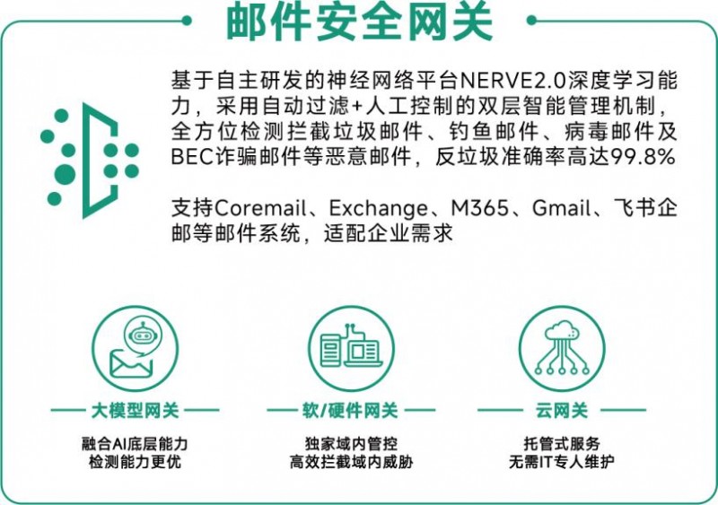 在“合规+防护”的双轮驱动下,部署此类适配新法要求的AI邮件安全方案,不仅能切实降低合规风险、规避高额罚款,更能为企业的数字化转型与业务长期稳定运行,筑牢可持续的安全底座。