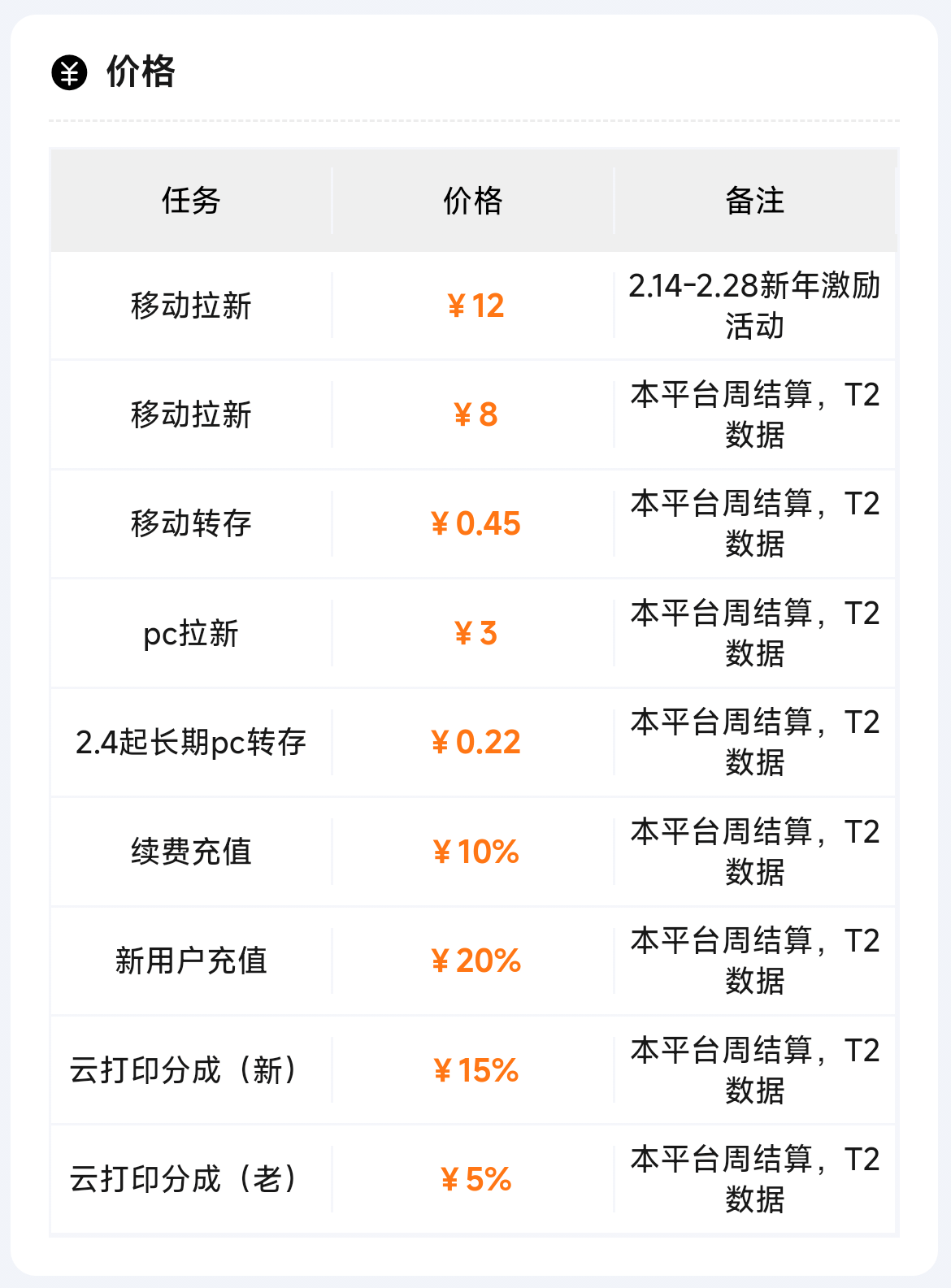 活动核心分为两大板块:移动端新用户获取计划与PC端转存收益模式。2月14日至28日期间,推广者每成功邀请一位移动端新用户,可获得12元奖励,该周期虽仅15天,但覆盖春节后职场人资料整理、学生群体学习资源准备等需求爆发期。与此同时,PC端转存功能自2月4日起长期开放,用户每完成一次有效转存,推广者即可获得0.22元收益,形成稳定的持续收益管道。这种“短期冲刺+长期积累”的组合策略,既满足推广者快速变现需求,又为长期运营提供基础支撑。