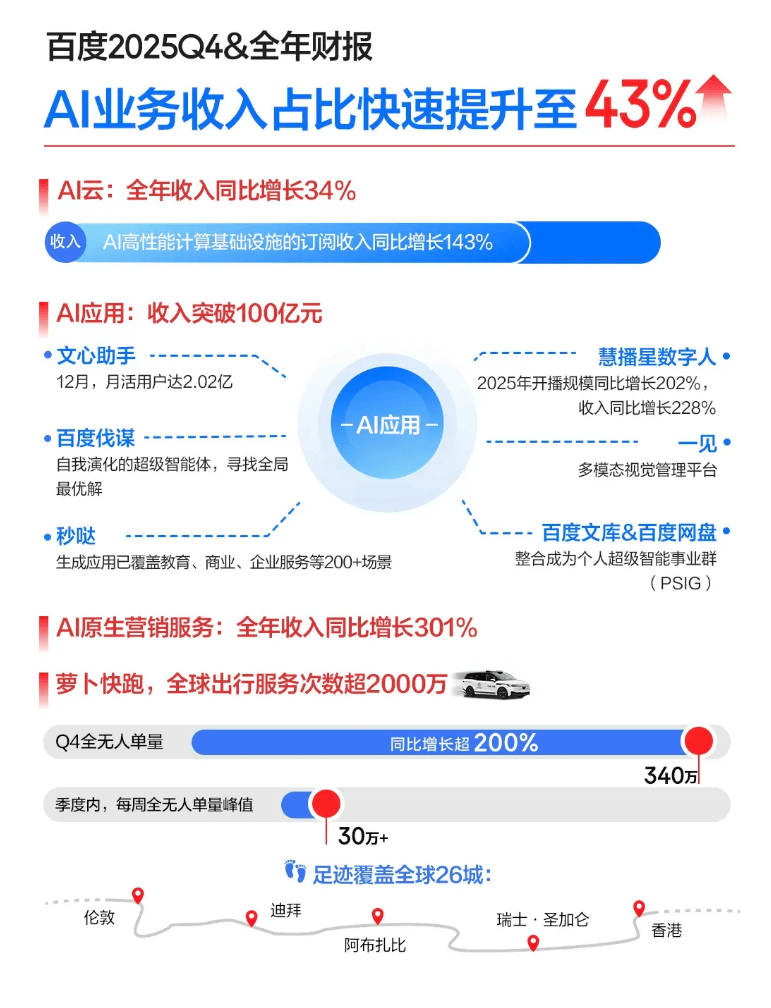 百度AI收入占比43%背后:15年布局终成体系,企业转型新范式显现