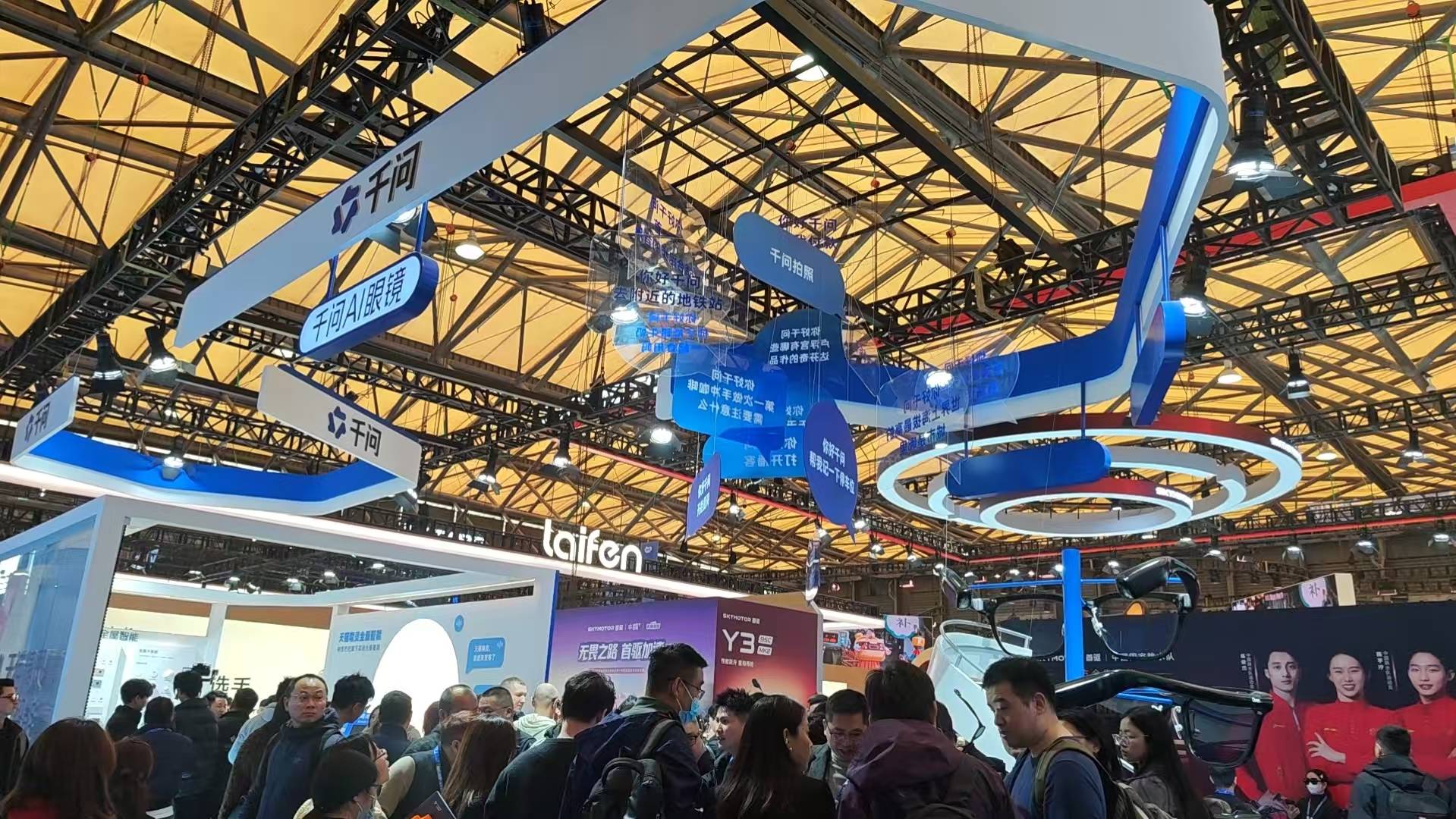 在交互方式革新领域,智能眼镜与会议耳机成为焦点。未来智能推出的千问AI眼镜,通过第一视角视觉感知技术,实现了环境理解与实时交互。体验区前排起的长队印证了市场热情,观众反复测试天气查询、导航指引、多语言翻译等功能。该公司CTO王松强调,这种设备将开启比手机更自然的交互时代,"当AI能看见你所见、理解你所面对,人机关系将发生质变"。